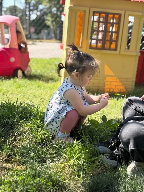 The toddlers’ classroom, for students approximately sixteen to twenty-four months, is an exciting realm with more space and equipment for opportunities to explore! Students in this class operate on a daily routine conducive to their age and development. There are several benchmarks students should reach to transition into this class: comfortable walking, napping once during the school day (directly following lunch), self-feeding, using a sippy cup instead of a bottle, and replacing the crib with a small cot. Children are exposed to student-driven and teacher-led activities as they work on language, motor skills, and peer interaction.